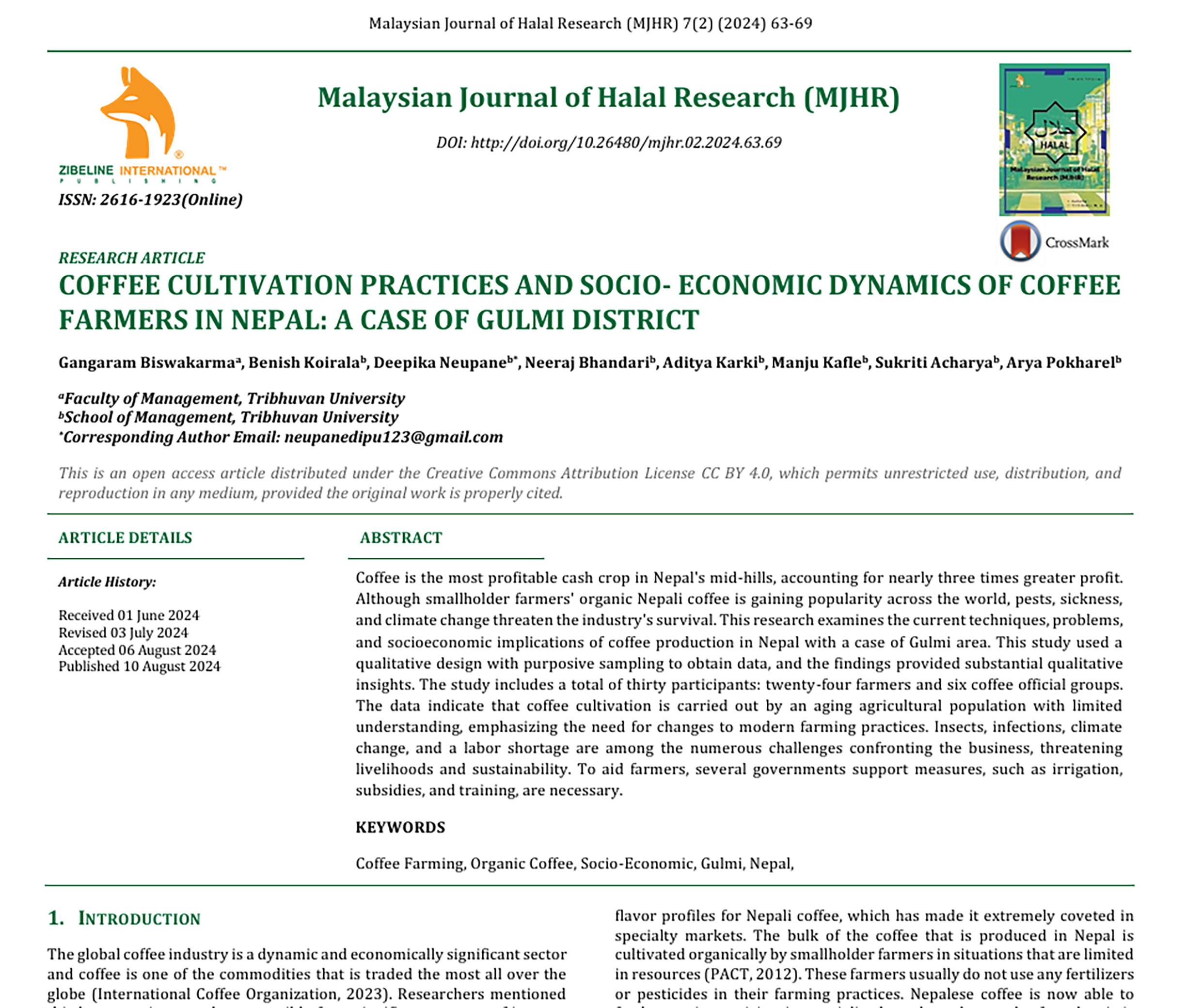 Coffee Cultivation Practices and Socio-Economic Dynamics of Coffee Farmers in Nepal: A case of Gulmi District